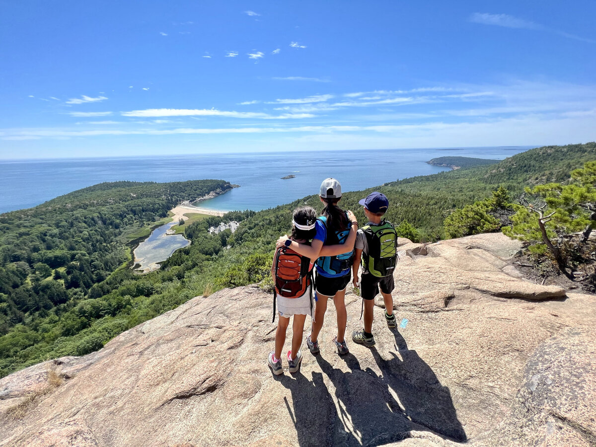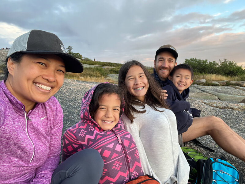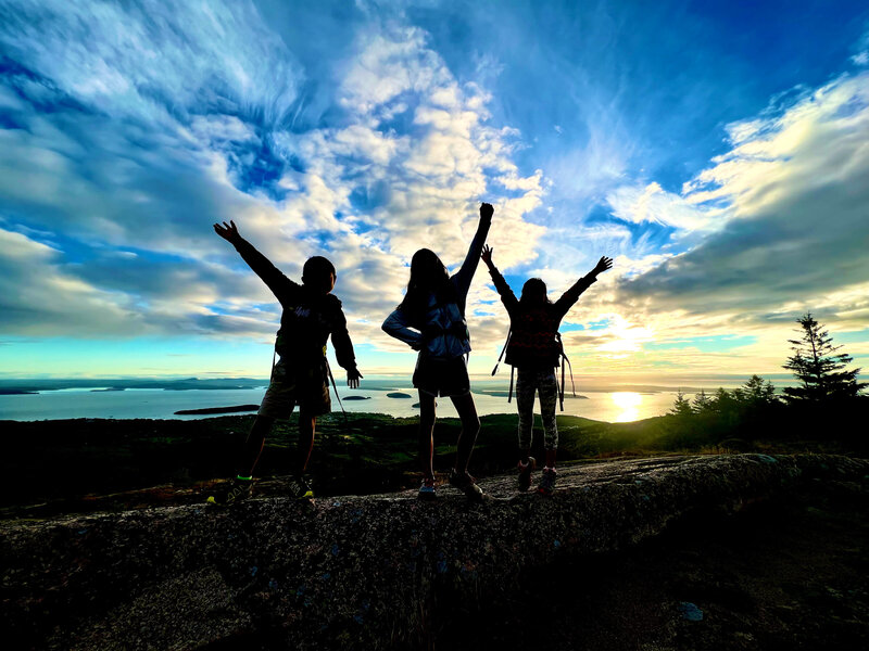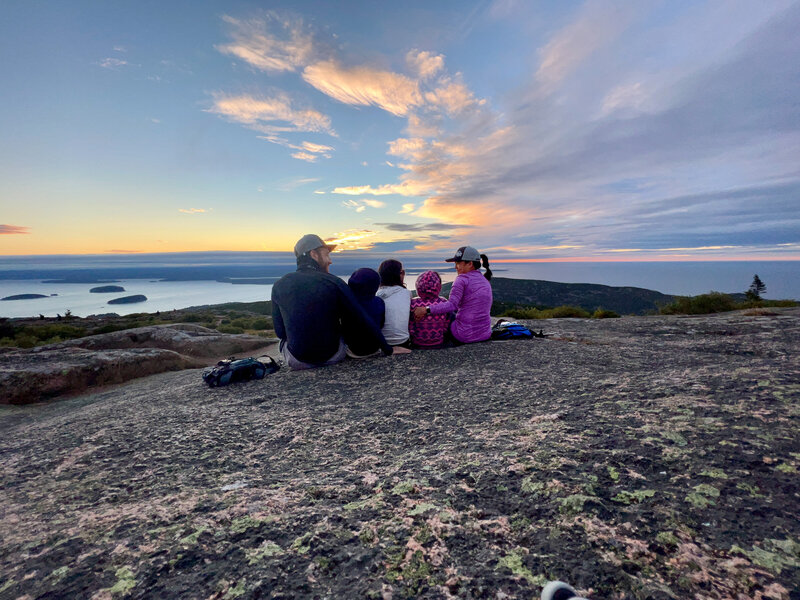 Enjoying the sunrise at Cadillac Mountain in Acadia National Park